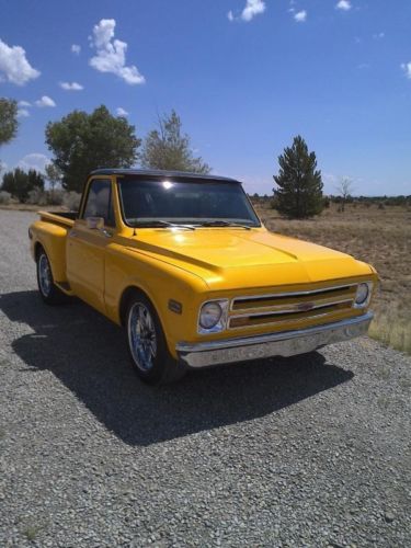 For sale is a 1969 Chevy short bed stepside pickup (68 grill). It has a new 4-bolt main 350 V-8 engine (330 hp), new Edelbrock intake with Holley 3310 carb, Taylor 8mm wires, 4-speed manual transmission, nearly new exterior paint (with a few chips see photos), new header-back dual exhaust system, new complete front to rear wiring harness, new tail lights, and mirrors. Hedman Hedders, updated interior with new carpet, door panels, knobs, handles, armrests, sliding rear window, windshield, tinted windows, 20” chrome wheels. Vehicle is listed locally auction may end early. All funds must clear before release of vehicle
