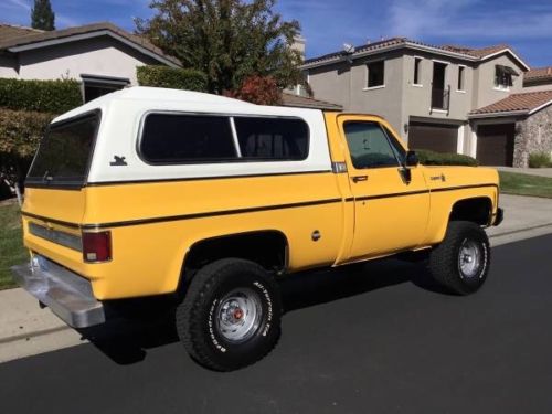 1978 Chevrolet C-10 Cheyenne, Four Wheel Drive, Manual 4-Spd Transmission Three Speed + Granny Gear / Low Gear, 5.7L 350ci 8Cyl, 76,648 Original Documented Miles, Both Motor And Trans Are Correct And Matching Too This Pick Up Truck, Original Yellow Color Repainted Only Once, Factory Air Condition / Heat / Defroster, Original Am/Fm Radio, Original Brown Interior w/ Tan Vinyl Bench, Brahma Camper Shell Topper, Towing Package w/ Heavy Duty Barden Bumper Installed In 1978, Bed Liner, Bf GoodRich 33” All Season Tires, 15” Rally Wheels, Aftermarket Lift Kit, Comes With Original Square Pink Slip When Bought New, Original Warranty Paperwork Obviously This Vehicle Has No Warranty But Still Awsome Too Have As Much Original Paperwork For The History Of This Pick Up, 1 Owner Vehicle, Grandpa Truck! Never Abused, Adult Owned, Well Maintained, Runs Excellent, And Is In Immaculate Condition, Clean Title, NO RUST! Always A California Vehicle, I Can Be Contacted By Cell Phone 9163678063 Thanks.