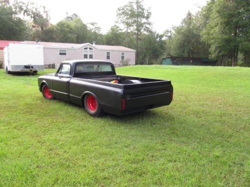 1968 Chevy C-10 with a stock 350 mated to a turbo 400 transmission. Swapped '78 Camaro front clip that's been rebuilt from tie-rod ends, brakes, rotors, and calipers all new. The rear end has been tubbed out and 4-linked. Seamless front bumper with it, external gas tank mounted between tubs. The top has been chopped 8 inches with new plexiglass front window. Brand new tires all the way around. New carpet and rubber seals come with the truck, they haven't been installed yet. Any questions welcome can show more photos if needed.