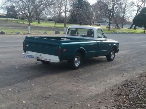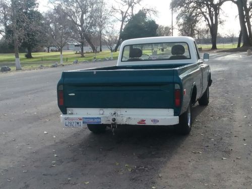 about 6 yrs. ago ,out of the Washington state high desert area, I drove it home to Redding California ,obtained a California title and have been driving it around the Redding area ever since , I had intended to install a 327 which I had ready to build for it and was waiting for the $ and the six banger to blow up to start the total frame off project , but it just kept going and going and going (six yrs now ), it’s like the energizer bunny LOL , in the morning it sounds like the bottom end is coming unglued but as soon as it warms up it quiets right down , I was told that someone may have used cast iron pistons and the skirts shrink when their cold , which causes piston slap that quiets down as soon as they warm up ( about 3 min. ) it holds 35lbs. oil pressure at idle and 50 lbs. when driving , it drives smooth and straight with no shakes or wobbles has developed a mis of late like one cylerder has an issue , I put tires on it about 4 yrs ago and you can see in the pics how well they have worn , it has some rust areas that need fixed ( like the rockers and kick panels , the floor is solid but has small areas of rust in the kick panel area , all in all it’s a pretty solid unit , except for the lousy paint job ( very poorly done ) it’s 98% original , including the bench seat , which is in good condition (will be included ), the buckets are so comfortable though I would never go back myself , the monojet carb is temperamental ( some days you need to adjust the airflow with the choke to get her to run good', she never heats up and uses very little oil , I love this old truck and wish I were able to make it the beauty I had envisioned , but at 71 yrs.old living on a small fixed income , I have to face reality , this is being sold as is where is and must be picked up within 30 days of auction end ,unless otherwise agreed upon prior , all cost and arrangements for shipping is the responsibility of the buyer , however if needed I will assist your shipper any way I can including bring the truck to them ( must be within 100 miles of Redding ca.) a $500.00 deposit is due through paypal within 48 hrs of auction end. and the full balance is due within 7 days , either cash in person or by cashiers check through priority mail . Thanks for looking and good luck bidding