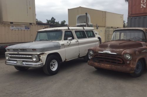1965 C10 1/2 ton Suburban.“Custom” model (very rare) with factory power brakes, power steering, AC (not installed buthave bracket and compressor), four speed NP (no granny), and 12 bolt posi. Also hasfront and rear hitch receivers, three fuel tanks (50 gallon total), and strong running 292 with modified head, custom cam grind, and 4 barrel Q jet and high performance intake and exhaust manifolds.It was stored since 1999 and I just spent several weeks waking her upand going through the mechanicals. Cylinder compression is 110-120, new clutch and valve job completed just prior to storage in 1999. New 31x10.50x15s. Solid clean hoodjust installed. Also comes with an entire clean, rust-free roof cut below the drip rails ready to be installed. Been in the family since1976 and we are second owner. I know its history intimately and I’mhappy to answer any questions.