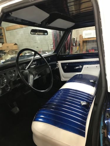 -Interior has brand new custom seat made to match the paint. All interior is painted to match the truck. New factory style radio with aux port and all new speakers. New carpet. All new heater vent hoses. New seatbelts.