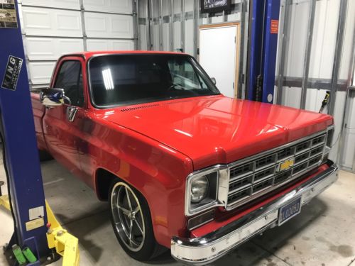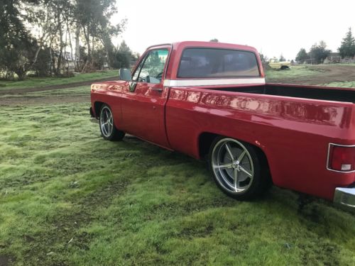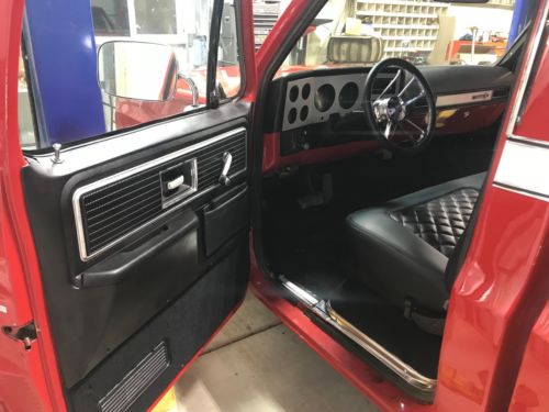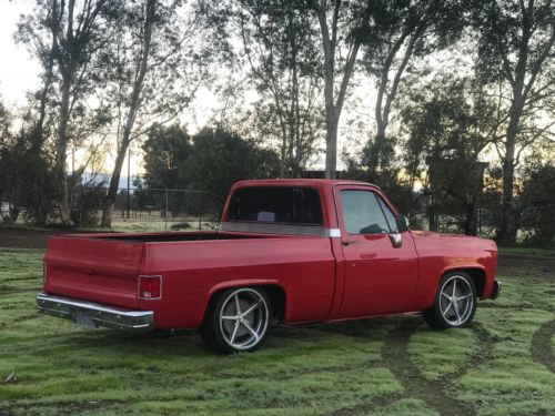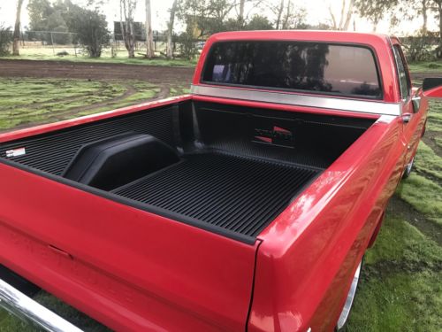 Rebuilt 350 engine th400 automatic trans. Truck runs and drives good with no issues. No rust at all has always been a ca truck. New interior (seat , headliner ,carpet new seat belts ) The seat has custom diamond stitching . Viper red paint that looks very good as you can see in pics. No dents or body damage. ZERO RUST. It was lowered 3" in the front and 4" in the back with DJM suspension parts. 20x8" wheels in the front and 20x10"s in the rear. . Theres no dings or dents and it is super straight. No leaks, no issues everything works. Holds a Clean Ca title If you have any questions please contact me for further details. New edelbrock carb and air cleaner. Truck fires right up and has plenty of power.
