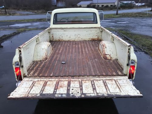 Basically everything on this truck has been replaced except for the original paint. Did paint the front grill area and Below the trim. Repaired a few dents & patched passanger lower front fender. Solid truck! Powder coated 15"original wheels with new Coker White wall tires, original hubcaps, powder coated core support, inner fender wells, suspension and bumpers! All new trim, passenger door trim is on upside down in pictures but already been fixed. New interior with custom seat using Pendleton beach towels, new bench seat foam and even the seat frame is powder coated. I have a retro sound deck that needs to be installed with new dash speakers. Installed new kick pods w/speakers already. Sport steering wheel and I have a tach conversion kit that goes with truck as well.