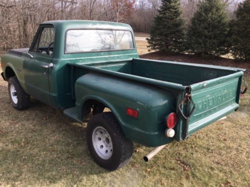 1972 Chevy Shortbed Stepside 4x4, 350 cu.in. V-8, 4-speed manual transmission with granny low first gear, NP-205 transfer case, manual locking front hubs. With this drivetrain you can drive with the front hubs locked in 2 wheel drive and if you need to go to 4 wheel drive, push the clutch in and shift the transfer case to 4 high. Shift on the fly 4 wheel drive! I had a Blazer with this same setup and it was a blast to drive being able to switch between 4WD and 2WD without stopping.