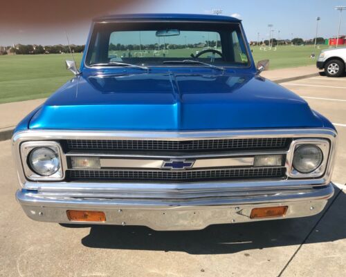 HERE IS AN EXTREMELY CLEAN AND VERY SOLID 1970 CHEVY C-10 SWB PICKUP TRUCK IN BLUE WITH BLUE INTERIOR! THIS CHEVY HAS A 350 V-8 MOTOR WITH A 4 BARREL CARB, AUTO TRANSMISSION, A/C, BENCH SEAT, AND A FEW SLIGHT MODIFICATIONS.