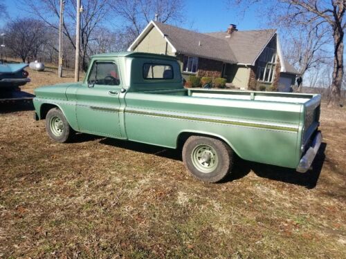 66 c10 long bed it has 6 cylinder and 3 speed floor shift it runs and drives has 1 brake thats sticky. Paint looks good but when you get up close you can see flaws. When it was painted something got in the paint it looks like to me. Has rust under paint in rear of the front fenders
