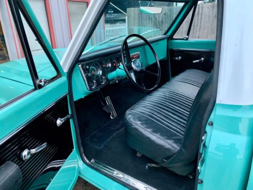 i have freshly restored 1967 c10 short bed fleet side pick up, just got done with restoration and the truck currently has 400 miles on it since it was finished, it has a 350 chevy that has been freshen up with all new gaskets with a weiand intake a small cam and a new demon 625 carb and the trans is a th350 that i believe to be stock and the rear end is a 4:10 posi trac, its does have powers steering and the truck is set up for power brakes all it needs is a booster and it would be good to go, it does have a custom red oak bed that was made by a cabinet maker and is really the center piece of the truck, whole bunch a has been done and too much to tell in one ad so if you have any questions feel free to message me and thank for looking! here's is a list of some of the new parts on the truck, brake lines, fuel lines, air Filter, exhaust and mufflers, all new sheet metal for bed, front and rear bumper, radiator, rad retainer, shocks, wiper motor, door panel, door panel chrome trim, arm rest, window crank, inside door handle, outside door handle, starter, front inner fenders splash pan, chrome door sill, fender emblems, radio, speakers, transmission cross member, retro hidden antenna, temp sender, all new hoses, ignition wires, u joint, new 275-60-15 master craft avengers, shifter, electric cooling fan, battery, thermostat, fluids, transmission filter kit, seat cover, dash pad, tachometer conversion kit, amp gauge, accelerator pedal and trim, brake pad, rear window seal, windshield seal, door weather seal, lockset, glove box, rear window glass, headlamp bezels, taillamp lens, rear mount gas tank set, stainless fuel filer, carpet, grille molding, sunvisers, bed stripes with bolts, 20 circuit wiring harness, cigarette lighter, headlight knob, cowl vent knob, wiper knob, knob bezels, instrument bezel 7 hole, turn signal lever, center caps, billet radio bezel, beauty rings, wiper arms, dome light, new brakes front and rear, lug nuts, oil pressure sender, oil pressure gauge, heater core, chrome valves covers and breather, alternator, engine gasket set, lokar kickdown cable, coolant recovery jug, hood, hood hinge, and I'm sure I'm forgetting some items but i think i got the majority,