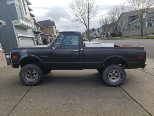 Here it is a rare 1969 K10 SWB California truck, truly fun truck it has a simply 4inch lift with a dana 44 with disc(71) gm open 12 bolt rear gears are 3.73.Tires are 33 inch(worn) The heart of the beast is a crate motor 350cu in.(top of the motor sits edelbrock airgap manifold with edelbrock offroad carb with manual chock) with only about 8,000 miles on it, its backed to a turbo 350 with np205 transfer case. It has an A/C cab has correct box and controls but no pump. It has an painless wiring 18 circuit all extra circuit wires where rolled up in case of use later down the road. It has polyurethane body mounts. Okay, so this was my daily driver about 12 years ago it stayed at my dads house in California for almost all that time where he would start it up drive around the block and park it. in the last six months its been stored in garage and is started about once a month only driven on off car trailer with no real driving being done. i have pics of what it looked like when we bought it (it was in Pieces) but cant upload them on ebay So reason for selling is simple I've gotten my dads 1970s K10 which has more history i remember and want to build this one with my son (to keep the automotive gene alive) I do not need to sell this but would like to give somebody else the chance to own one of these beasts. please contact me with any questions it will be for sell locally and can end at any time
