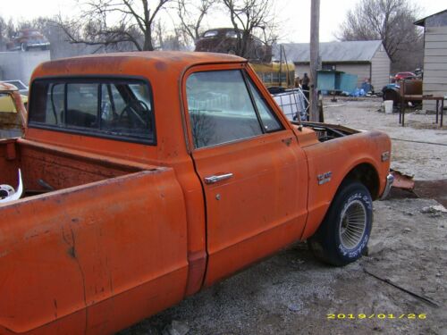 1970 chevy C-10 truck, No motor or trans. Long bed, body is solid, very straight for it's age. All glass good, except windshield is milky on the lower edges. Seats are not factory. Bill of sale only, no title. truck is advertised locally. pick up only, no shipping.