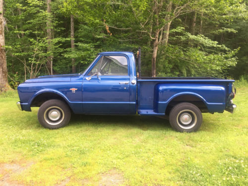 1967 CHEVY C10 STEPSIDE SHORT BED 1965 283 V8 rebuilt from the bottom up. Rochester 2 jet two barrel carburetor. 700R4 overdrive transmission. Rear gears are 307 with limited slip differential. Aluminum radiator. Power steering, power drum brakes. New windshield and rubber. Rear window is original with new rubber. Side windows are original. Rocker panels are like new as well as cab supports and floor panels. Truck was purchased in Virginia with very minor rust issues which were cut out and metal welded in. Everything underneath is in pristine condition; spray undercoated all areas to 100% coverage. Seat is black vinyl with a cloth cover. Floors are carpet with rubber mats. Heater & defrost are good. Wiring fuses and relays have been moved to the engine compartment for accessibility. Custom dual exhaust with 2 1/2 inch pipe and flowmaster mufflers. Paint is Flaming Blue Pearl base coat clear coat. Not a show truck, but it could be with minimal effort. This is a SOLID truck.Feel free to make an offer,but no trades. Buyer is responsible for vehicle pickup or shipping arrangements & fees.Vehicle is located 1 hour north of Boston, MA. Please check shipping costs before purchasing. Thank you for your interest in this classic truck. I'm happy to answer any questions you might have.