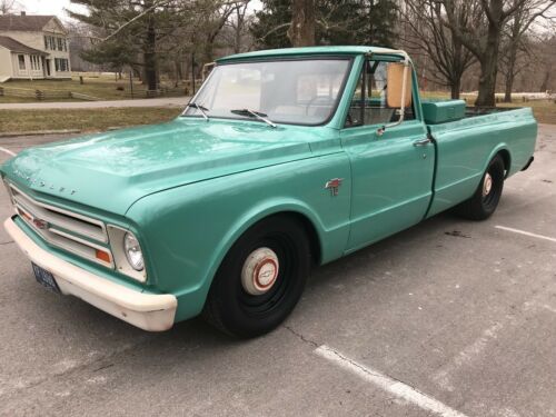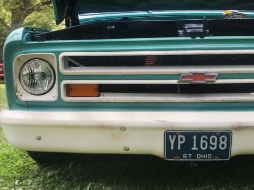 This is a beautifully restored truck painted original light green, with original west coast mirrors, dog dish chevy hub caps and grill, all with original white paint that was left with the patina. New bumpers painted to match the patina. Tailgate left original patina. Original 283 with 3 on the tree. This truck runs and drives like a top. All of the changes were tastefully done to leave the truck look original, but with modifications that were updated to make the truck run and drive more dependably, smoother and safer and look cooler. The custom leather trimmed seat cover complements the orginal truck’s color and look, but is very unique and like no other. This truck was built to pull a small 1967 Airstream travel trailer that I also restored. So everything was done heavy duty to be safe and smooth with a load on or a trailer behind it. That trailer sold prior to completion of the truck restoration. (Too much interest to hang onto it!!)