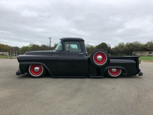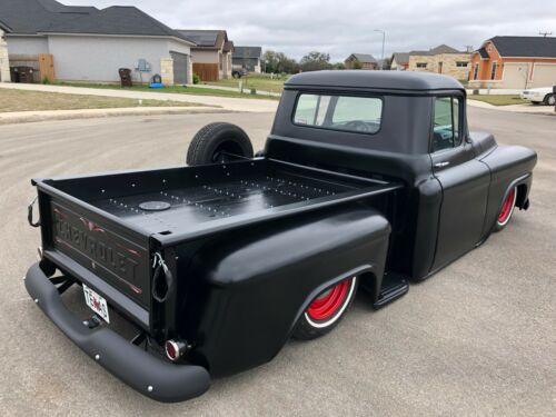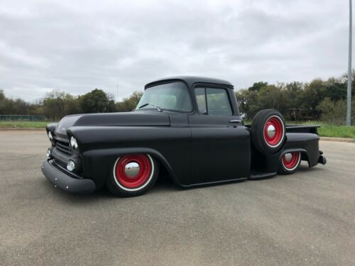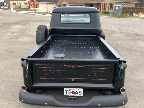 Interior: All black, Newly wrapped seat in black vinyl. New black carpet and floor mats.New Grant steering wheel with red chevy logo. All new handles on each door. New glove box door and glove box itself.