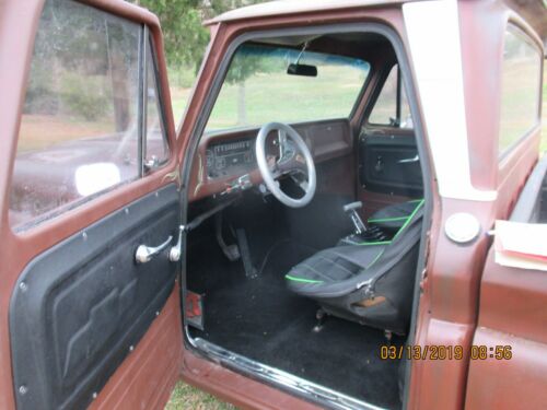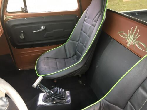 The truck has custom interior headliner, door panels, kick panels, between the seats, B/M star shifter on the floor, and custom pin striping inside and out. original bed floor is covered w/ plywood.