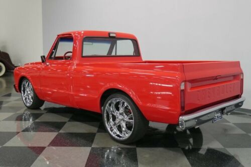 If you're looking for an example of vintage restoration done right, here it is. The quality on display is undeniable, starting with the slick and shiny red paint (a factory shade borrowed from Volkswagen) cloaked over the exterior - we're talking "show-off and be proud" quality here. Step up a little closer and you'll notice this C10's precise exterior alignment - the gaps surrounding its hood and doors look very precise and, from front to back, all body panels align really well. The slightly lowered stance offers a touch more aftermarket cachet yet still leaves enough wheel clearance to make room for those big boy 22s at each corner. The glass surrounding the cab has a subtle tint to it, with front and rear windshields that are protected by all new seals. That eye-catching paint also serves as a very effective backdrop for the fresh chrome also on board - the bumpers both fore and aft as well as the dual side mirrors. Both handles on the doors have been shaved and are now controlled by electronic poppers, and the gas filler is now cleverly hidden behind the driver's side taillight. How cool is that?!