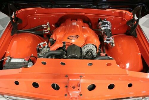 There's modern tech under the hood in the form of a burly 6.0 liter Vortec V8. Based on the LS1, it's lighter, more powerful, and more efficient than the usual small block V8 and thanks to the wonders of fuel injection, it starts instantly, idles smoothly, and makes prodigious torque at any speed. The color-matched engine cover makes it look like it was born there, and obviously patina wasn't the order of the day when the engine bay was going together. There's fresh orange paint on the custom firewall and inner fenders, and the rest is all polished. A big aluminum radiator keeps the LS cool and there's a new power master cylinder for the brand new front disc brakes. The undercarriage is tidy, again with some patina but no issues, and the modifications for the air bag suspension were neatly done to preserve original hardware wherever possible. The stance is perfect and the rumble through the straight pipes isn't to be missed. 20-inch Torque Thrust wheels help with the contrasting look and carry 255/35/20 front and 275/40/20 rear Toyo performance radials.