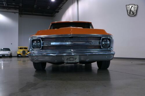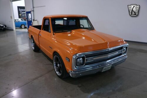 Gateway Classic Cars is pleased to feature this 1970 Chevrolet C10 in our Indianapolis showroom. This timeless pick up classic is powered by the big boy 454 cubic inch V8 mated to a 700R Ratchet shifter automatic Transmission. As these trucks continue to populate the classic muscle world, this one is no exception for customization as well as unique style. The interior has a playful Wolf Mad Hatter shift not with sleek and stylish leather by Mercedes Benz with AM/FM radio. The exterior paint is a beautiful orange. To cap off the perfect resto mod look. This old work truck sits on Riddler Wheels with nice wide low-profile tires for grip, weather it be the track or everyday use. [ omitted ]. Along with all the rest of our fantastic inventory in this showroom as well as our other seventeen showrooms! Better yet, stop by our Indianapolis showroom and see the car in person! We're located at 4400 W. 96th Street, Indianapolis, Indiana. We're available Monday-Saturday 9am to 5pm EST. Contact us directly at 317-688-1100. [ omitted ].