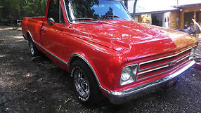 I BOUGHT THIS TRUCK A CPLE YEARS AGO IT WAS PROBALY 75 % RESTORED PAID 10 K FOR THE PAINT JOB HAVE ALL THE RECEIPTS BRAND NEW GOOD YEAR TIRES CRAGAR WHEELS BRAND NEW BED INSIDE AND OUT ALL NEW INTERIOR NEW GLASS ALL THE WAY THRU 4 SPEED MANUAL TRANS W/BRAND NEW CENTER FORCE CLUTCH 4 11 POSI 12 BOLT REAREND BEEN CAHANGED TO POWER STEERING POWER DISC BRAKES ALL NEW WEATHERSTRIPPING ALL NEW CAB AND BED BUSHINGS NEW CHROME BUMPERS BRAND NEW ONLY HAS A COUPLE HUNDRED MILES ON THIS 1968 MODEL 327 ENGINE CAME FACTORY WITH 365 HP IT HAS ROLLER ROCKERS COMP CAM 2.02 VALVES STEEL CRANK EDELBROCK VICTOR JR INTAKE AND CARD NEW ALUMINUM RADIATOR W/ 2 ELECTRIC FANS EDELBROCK ALUMINUM WATER PUMP MSD IGNITION HOOKER HEADERS NEW FLOWMASTER EXHAUST BILLET POWER STEERING PUMP AND BRAKE BOOSTER THIS TRUCK IS ONE OF THE SHARPEST 67 I HAVE EVER SEEN IT SOUNDS WICKED DRIVES EXREMELY WELL HOLDS TRUE TO THE RD AND TURNS ALOT OF HEADS DONT HAVE TO SELL IT BUT I WILL BUT NOT CHEAP! THANKS