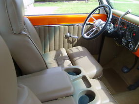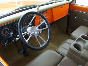 Nothing too radical going on inside, just more expertly finished work to create a truck that's probably better than new. The factory bench has been replaced with triple tan leather covered bucket seats with door panels and a dashboard to match. Factory instruments are used for viewing oil pressure, temperature, and voltage, as well as a factory tachometer nestled into the center where it should be. This is not your garden-variety pickup truck. The factory stereo location has been retrofitted with controls for the vintage air conditioning unit. The stereo head unit in the dash was relocated to the where the original heater controls were. The install has a nice OEM look to it and sounds a lot better than the crackling original AM radio and once finished installing the A/C it would stay pleasant inside even on the hottest days.