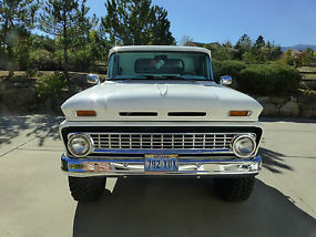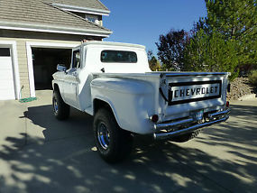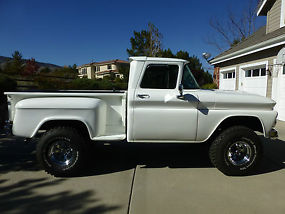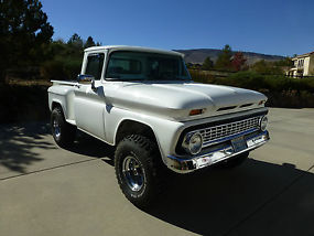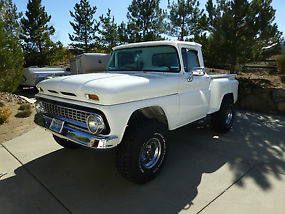 The Good: Here it is, a one of a kind loaded w/auto/air 63' Chevy short bed step side 4x4 K-10. This truck started as 2-wheel drive C-10 and had a complete frame-off restoration utilizing a much stronger box frame from a late seventies truck. You can actually eat off the fenderwells, frame, etc. The frame rails are all painted black, not undercoated to cover rust! This baby looks like it just came off the assembly line-every nut and bolt is new! All the metal in the cab and outside is brilliant white. The dash has also been redone as has all the metal inside the cab, all glass and chrome, bumpers, grill, weatherstripping etc. An extensive list of modern changes have been made (by professionals, i.e. Folbeck 4WD, Transcraft, and Reno Autobody in Reno, NV). It looks, drives and runs like a much newer truck. She has a 350 Chevy small-block with 4 bolt main and less than 10,000 miles coupled to a newly rebuilt and strengthened Turbo-Hydramatic 400 automatic transmission and new torque converter. The original "divorced" Rockwell transfer case was replaced with a much stronger married NP205. New custom and balanced driveshafts and U-joints with new Dana 44 front end and new Chevy 12 bolt rear - both with 30 spline axles and 3.73 gearing. 4" lift with almost new 35" BF Goodrich MT tires and chrome wheels. New power front disc and rear drum brakes with all new metal brake lines, proportioning valve, and power booster. Power steering and a brand new vintage air unit installed and it is the factory in dash model, not the big unit hanging down under the dash (you have to close valve from radiator to heater core and turn knob under dash to turn on compressor to use air and reverse to use heat). New carpet, new two-tone black suede/white vinyl bench seat. New gas tank is no longer in cab behind seat (custom tank between frame rails). Custom Alpine stereo cd, mp3 with speakers in box's behind seat. B&M automatic ratchet shifter (performance type) All windows roll fine, vents swing open/closed and lock. The engine compartment is mint and clean. New radiator, hoses, belts, battery, plugs, wires, etc. The engine has a chrome Edelbrock 4 barrel carburetor, new electric fuel pump and alternator, chrome headers, valve covers and more. Chrome double tube rear bumper with new aluminized exhaust system with dual chrome outlets. The truck sounds great, but not too loud. New tie rod, pitman arm, drag links, steering stabilizer and sway bar installed so truck steers straight as an arrow and doesn't tilt and sway like a 50 year old truck. Modern seat belts were also recently installed.
