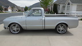 This is my custom built truck that I have decided to sell. 1968 short bed c-10 that has been tubbed to fit the custom built 22 inch rims with new tires. Rhino lined bed. Baer big disc brakes all the way around. 350 motor that has been chromed out. One off belt drive system with a/c. It has one of a kind interior. The center console was built for this truck only. The dash has been painted to match the exterior. California truck. Now in Utah but it is trailered and only driven in the warm weather. It does not have wiper arms or motor so you know it is only driven in nice weather. There is a lot of money in this truck tha The reserve is reasonably set. I am open to offers. probably no trades. I can send more pictures. you can call or text with questions. 8013699164.