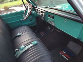 Interior is nice with clean black loop carpet. Dash pad is newer, but has nick, interior paint has chips. Dome light and temp gauge inop. Has aftermarket temp gauge and tachometer. Just replaced water pump.
