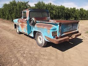 1960 Chevrolet C-10 Big Window Shortbed Stepside Pickup, Small block 283 V-8, 4 Speed Manual Transmission solid California truck with clean title on non op, runs and drives good new master cylinder and clutch was replaced needs brakes bled, super nice patina original paint only rust on drivers floor board can be seen in pic original bed wood, all original glass in good condition window roll up and down nicely, fresh barnfind has not even been washed just flushed the fuel system and got it running, uncut dash all original survivor pickup, can help with shipping nationwide or overseas, no trades $6500 530-415-9205 Paul