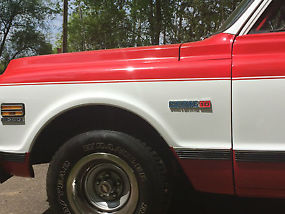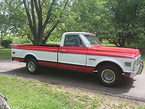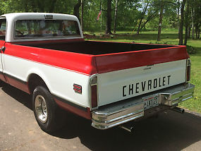 Nice driver quality Cheyenne.Truck is good running/shifting and driving for a 43 year old classic truck.Truck is a factory Cheyenne with the rare FACTORY tilt steering column and Factory air which is not complete/not working.Many parts have been replaced throughout such as NEW windshield,---NEW Distributor,---New Carburetor Holley 600 ---New 100 amp one wire alternator ---New Battery---and misc.parts such as radiator hoses ect.Seat is newly recovered in heavy vinyl material.New bedliner sprayed on.