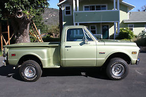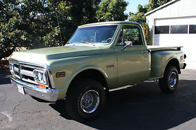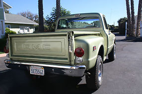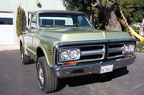 Very Rare Original 1972 GMC K10 Short Bed, Step Side, 4x4, 4 Speed, Sierra Grande. Paint is about a year old and shines really nice. Original color was red orange changed to avocado green. The original paint color is still visible on floor pans under carpet, and areas of undercarriage. Solid original body panels and always a California truck. Interior has original bucket seats with console in great shape. New wood bed made out of Ipe custom hardwood with stainless strips and hardware. Engine runs strong, transmission shifts perfect, and everything works. Tracks strait down the road without any rattles or shakes, even at freeway speeds. Power steering is nice and tight. AC was removed but i do have the parts to reinstall the system. Beautiful truck that has never been abused or beat up like most all trucks of this era. I have more pics that i can send though Shutterfly Photo Album to interested buyers. I can be reached at 805-896-sevensixnineone.Thanks, Wil