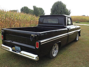 65 chevy c-10 1/2 ton short bed rust free truck .Truck was painted 2 years ago 5 lug converted and disc brakes added . 355 v8 small block with comp cam and turbo 350 trans .Has dropped spindles and lowering springs flowmaster dual exhaust all new brakes and lines .Has new cd player with custom kick panels with speakers new carpet all new trim and bumpers . The front fenders were replaced with nos front fenders truck is rust free we started with a very solid truck that was pulled out of a 20 year storage garage kept .Wheels and tires have less then 500 miles. has fresh oak floor installed . please look at pictures and ask questions