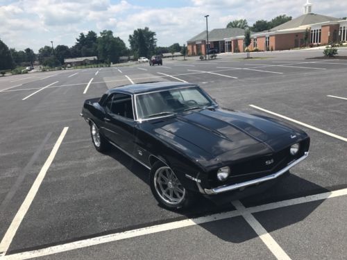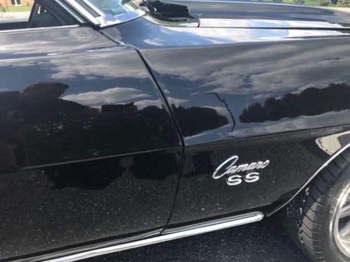 I am VERY picky about my cars and this is super clean - no disappointments. This car cannot be duplicated for my asking price. Here is your chance to own a beautiful black on black 1969 Camaro SS 396 tribute car. This is the right color combo with the right options. This car is equipped with power steering, power disc brakes, bucket seats, console, 396 big block engine, TH400 transmission, and a posi-traction 10 bolt rear end. The car includes two sets of brand new wheels and tires – you can choose the classic look or the more modern pro touring look. Most of the chrome is new including the bumpers, handles, and mirrors. The interior is in excellent condition. The body gaps are excellent, and the base coat/clear paint is very slick. This car is stored in my climate controlled garage. I have owned some very nice $100k plus cars so I am very picky about my vehicles. I would consider this to be a very nice above average car. I have ~100 HD pictures showing the detail of this car. Ask any questions you may have.