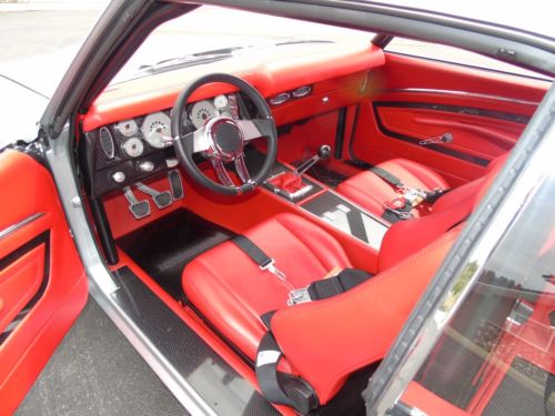 Body/Paint: The body is primarily stock keeping the beautiful and popular lines of the 69 with many custom features not initially seen until you learn about how the body was incorporated into the suspension and chassis. What is hidden is the monocoque chassis design connecting all aspects of the body and suspension providing a very solid ride built for performance. Even though the car was built to be street driven and enjoyed on the road it is built like a race car with many hi performance NASCAR features. This was all by design due to Rick Hendricks influence. Carbon fiber hood, cowl, valance, front and rear spoilers. Front fenders, header panel, bumpers and trunk lid is aluminum. Many areas have been drilled to lessen the weight of the car. Brake and fuel lines are hidden in the extended rocker panels. The rockers are also altered to lift the car in the middle as well as to ad weights internally on both sides to customize G force depending on the track. Custom made steel inner fenders. Trunk has a gas tank breather along with rear sway bar adjuster. Carbon fiber tail light housings along with coil over shock adjusters.
