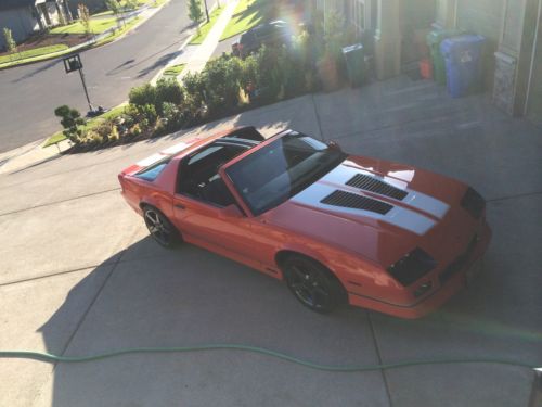 This is a clean IROC-Z with normal drive wear. Drives great and everything works. Z06 rims with Michelin Run Flats. About 75% tread on the tires. Interior has been completely redone. HD stereo head unit with Rockford Fosgate Speakers and Kenwood 12" Subs in the back. Original Leather GM T-Top Bag. T-Top Sunshades also and Rear Leather Roll-Out Cover. Cermanic Brake Pads all around with Slotted and Drilled Rotors. Aluminum Drive Line and Posi Track Rear.