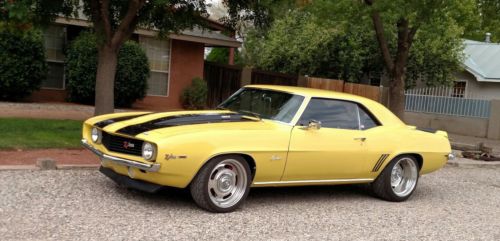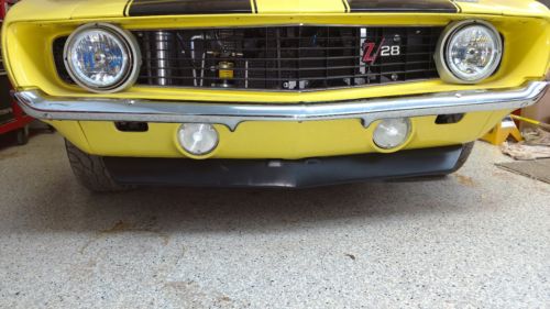 1969 Z28 Resto Mod. Everything on this car is NEW. Fast burn GM 383 ci motor Hughes 700R transmission Detroit Speed narrowed 12 bolt with 355 posi Detroit speed Mini tub with stainless steel gas tank wheels custom measured and built for car tubular front suspension B Cool Twin fan Radiator Baer 4 wheel disc tranny cooler vintage air GM serpentine belt set up Carbon fiber dash with matching auto meter gauges Ididit tilt steering column with stock wood GN wheel interior is flawless Corbin seats with matching fabric rear custom made to match front buckets Hodgkis sub frame connectors B&M shifter all new master cylinder booster power steering box LED lights with sequential rearso much more