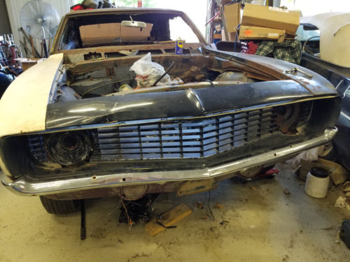 This is a project car. It will need most of the metal replaced as usual but it is a rare car with its original engine. I have not worked on the engine. I bought this a few years back on ebay from an estate. It was disassembled and stored in a storage unit. It has a clear and clean Illinois title in my name. I have partially re-assembled it so that it rolls in one piece. There are some additional misc. parts.that come with it in addition to what you see in the pictures. A mostly complete car (no hood or cowl vent grill,drive shaft,etc) the drive train (engine , trans,rear) is loosely bolted together for transport. Check out the LM1 registry on the net for more information on LM1 Camaros. I was going to restore it but I have a couple of camaros that are a higher priority for me. This will obviously need to be hauled on a trailer. It does not run (no fuel tank). I can help load it. It does roll freely and all parts can fit in the car. This was a style trim (pre X11 code) car. It had chrome brake louvers on the quarters, stainless wheel well moldings, and pinstripes. The pinstripes are still visible on one door and a fender.The back section of the backseat was missing when I got it. I have tossed in a rusty folding back seat frame. These are rare. This one needs some rust repair but could be used with some work. Thanks and have fun bidding.