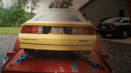 Solid and clean car. Was a 5.0 tuned port injection (TPI) car, with automatic transmission. Only 63,000 miles on body. Yellow body with black cloth interior. Power windows, power locks, tilt, cruise, console, AM/FM cassette with graphic equalizer, overhead console, rear cargo shade. 16 inch IROC wheels in nice shape with all center caps. Original spare tire and jack. New headliner. Original owners manual. Interior is clean with only small rip on drivers side. Body has rock solid frame and floors. Car has new exhaust installed.