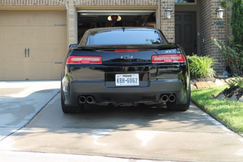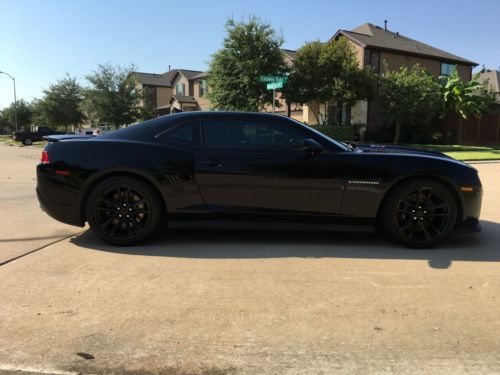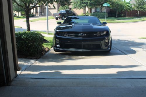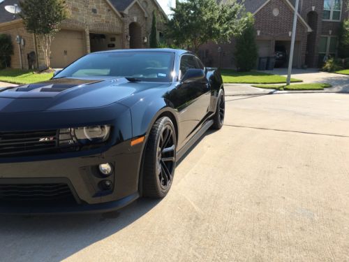 This is a beautiful black(wheels) on black(interior) on black(wheels) ZL1 Camaro. It is fully loaded. I will go through the stock options below and the upgrades further. It has a custom ZL1 Soft cover that stays on it when not being driven. It is garage kept with the cover on. Cover is included.