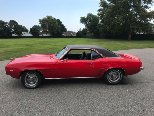I'M SELLING MY 1969 CAMARO RALLY SPORT TWO OWNER CAR THAT'S ALL NUMBERS MATCHING. I PURCHASED THIS CAR FROM THE SECOND OWNER WHO PURCHASED IT FROM THE ORIGINAL OWNER 30 YEARS AGO. HE RESTORED IT 28 YEARS AGO AND IT WAS GARAGED THE WHOLE TIME HE OWNED IT AS WELL AS THE ORIGINAL OWNER WHO ALWAYS GARAGED IT!! IT HASN'T SEEN RAIN OR SNOW IN OVER 30 YEARS!! THE SECOND OWNER BUMPED INTO THE BACK OF THE GARAGE 20 YEARS AGO AS YOU CAN SEE IN THE PICTURE AND HE NEVER FIXED IT. THE A/C COMPRESSOR WAS TAKEN OUT AND ORIGINAL AIR CLEANER WAS CHANGED AS FAR AS THAT UNDER THE HOOD EVERYTHING IS ALL ORIGINAL. THE HIDEAWAY LIGHTS WORK BUT THE VACUME RELAY IS VERY LAZY!! IT'S $49 FOR A NEW ONE AND TAKE ABOUT TEN MINUTES TO CHANGE. THE DELUXE INTERIOR IS IN VERY NICE SHAPE BUT THE DRIVER SEAT ON THE SIDE IS TORN. EVERYTHING ELSE IS IN VERY GOOD CONDITION! THE BODY PANELS ARE ALL ORIGINAL AND IS IN NICE SHAPE WITH A LITTLE FILLER HERE AND THERE BUT NOT BAD AT ALL AND SHOWS VERY NICE AS YOU CAN SEE IN THE PICTURES, IT'S NOT PERFECT BUT VERY NICE AND SHOWS VERY NICE!! THE WHOLE UNDER CARRIAGE IS MINT AND ORIGINAL!!! AND THAT'S NOT OFTEN YOU CAN SAY THAT!!!! THE TRUNK, REAR FRAME RAILS, FLOORS, INNER AND OUTER ROCKERS, FRONT FRAME ARE ALL EXTREMELY CLEAN!!!! EVERY THING WORKS AS IT SHOULD! THIS CAR RUNS AND DRIVES LIKE NEW AND CAN BE DRIVEN ANYWHERE WITH OUT ANY WORRIES!! I HAVE THE ORIGINAL TITLE, PROTECT O PLATE, ORDER SHEET AND PAPER WORK FROM DEALER. I HAD TO CHECK THE BOX FOR CLEAR TITLE IN ABLE TO LIST IT! I HAVE A STATE OF NEW HAMPSHIRE REGISTRATION CERTIFICATE AND A NOTARIZED BILL OF SALE SO YOU CA REGISTER IT IN YOUR STATE! NEW HAMPSHIRE DOES NOT ISSUE TITLES FOR THERE CARS. I'M SURE I'M FORGETTING A LOT SO PLEASE ASK ANY QUESTIONS YOU MIGHT HAVE AND DON'T ASSUME ANYTHING!!! IT IS VERY HARD TO TRY TO DESCRIBE A CAR IN A FEW SENTENCES SO PLEASE ASK QUESTIONS!!! IF YOU BUY THIS CAR I WANT YOU TO BE HAPPY WITH IT!! PLEASE DO NOT USE THE BUY NOW UNLESS YOU ARE ABLE TO SEND A NON REFUNDABLE $500 DEPOSIT AT THAT TIME!! THESE AUCTIONS TAKE TIME AND COST MONEY!! IF YOU USE THE BUY NOW WITH OUT ASKING ANY QUESTIONS AND DECIDE YOU DON'T WANT IT YOU WILL NOT GET YOUR DEPOSIT BACK!! TO MANY PEOPLE LIKE TO USE THE BUY NOW AND SAY THEY DECIDE THAT THEY DON'T WANT IT. SO PLEASE BEFORE YOU HIT THE BUY NOW MAKE SURE IT'S THE CAR YOUR LOOKING FOR. THANK YOU FOR LOOKING AND HAVE A GREAT DAY!!
