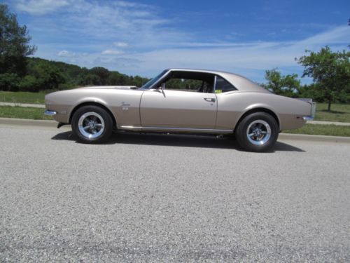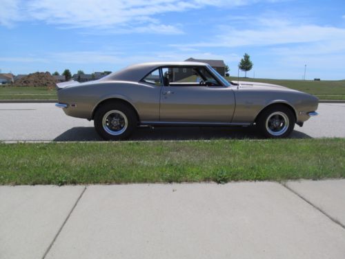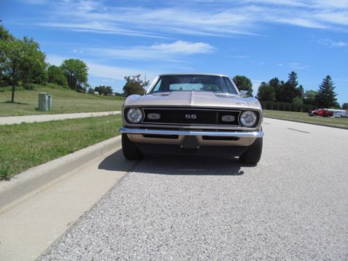 1968 Camaro coupe, very clean body top & bottom. Wegner Motorsports built 427 cu. in. engine, 4 bolt mains, balanced, Lunati cam,lifters, and pushrods. Needle bearing rocker arms, aluminum heads, Keith black pistons, eagle I-beam rods, & GM forged crank. ARP bolts throughout engine. GM aluminum intake manifold and Holley 770 cfm carb with electric choke. Lakewood scattershield with McCleod clutch. Muncie 4 speed transmission with Hurst shifter. New heavy duty driveshaft. New Quick Performance 9" Ford rearend with 3:50 gears, heavy duty posi unit and high performance axles. New coated headers with 2.5" exhaust all the way back. 4wheel disc brakes. Aluminum radiator. New American wheels with new Firestone tires up front and Nitto drag radials in the rear. New Cal-Trac traction bars. All of the aforementioned parts have less than 400 miles on them.