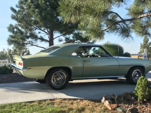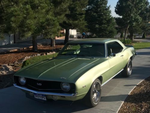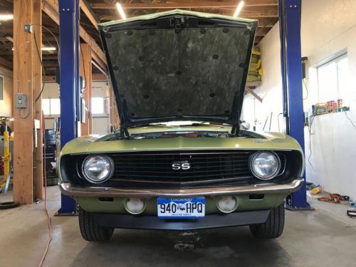 1969 Chevrolet Camaro SS with numbers matching 350 engine and body, 3 speed transmission and 10 bolt rear end. Original and rust free lime 59 exterior with matching original lime 59 interior, very rare combination. Driver seat has split on side bolster but the rest of the interior is perfect. Was original power steering and A/C car, A/C compressor has been removed but all other associated parts are still installed. Every bushing and piece of rubber under the car has been renewed with high quality replacements as well as new rear leaf springs (old ones were sagging) and all tie rods, inner and outer. Rear Brakes replaced with new shoes, drums, wheel cylinders and hardware with new brake lines from the master all the way back. Front has new power disc brake conversion with new wheel bearings, seals new brake lines all the way from the master. New stainless steel fuel tank installed with new straps. I have added a few performance parts for fun such as 1404 edlebrock carb, MSD disi and coil, mid rise high flow intake manifold and long tube headers feeding into a 3 inch all the way back(sounds amazing). Still have original wheels, exhaust manifolds, front brake setup, timing cover and all original SS badging. This car looks amazing and is a blast to drive, fast, tight and stops on a dime. Questions or to come see call 303-956-oh nine four oh
