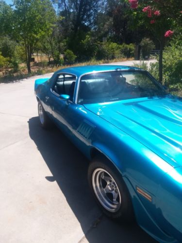 350CI with a superslide tranny with a B and M shifter..edelbrock 4 barrel carb. High Performance exhaust (extra headers included) rear air suspension, Bluetooth Radio and Rockford Fosgate 6x9sThe Camaro has been completely Dyna Matted so no rattles.New interior with crushed velvet door panels.