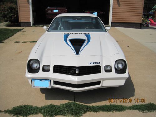 I've decided to sell my 1979 Camaro Z28 4 speed car. Im the 3rd owner of this Z28. Vehicle is very original. Has all the numbers matching engine transmission and rear end. The engine has been fully rebuilt. Upgraded cylinder heads that are period correct. I DO HAVE the original set of heads and they will come with the vehicle. Engine does have headers installed in place of the original exhaust manifolds and true 2 1/2 inch dual exhaust. Vehicle sounds great, but also runs and drives great. Car is super clean inside and out. No rust through anywhere. Minor surface rust on undercarriage where the undercoating has worn off and on differential. Would clean right up with a wire brush, if concerned. Paint is new and all decals are new. Tires are also new. Bid with confidence. Car is for sale locally, I do have the right to end auction anytime. Call or text Nick with any questions 319-929-one898. Thanks