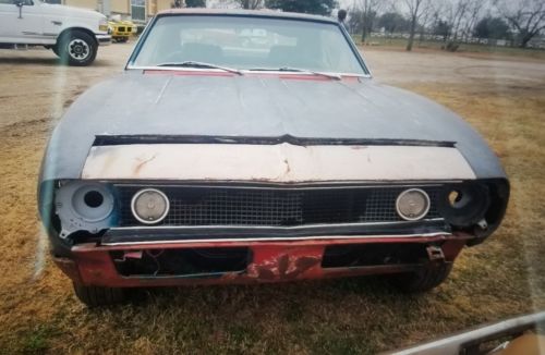 UP FOR BID IS A 1967 CAMARO THAT HAS A 327 ENGINE AND MANUAL TRANSMISSION, ENGINE RUNS BUT WOULD RECOMMEND GOING THRU THE BRAKES BEFORE TAKE THE CAR FOR A CRUISE, THE CAR IS ALMOST COMPLETE, COMES WITH SOME SORT OF PARTS THAT ARE PICTURED.THE CAR NEEDS DRIVER SIDE FLOOR PAN REPLACED, ALSO SOME PATCHES HERE AND THERE, AND METAL WORK ALL OVER, LOOK AT THE PICTURES AND ASK ALL THE QUESTIONS YOU MAY HAVE BEFORE PLACING A BID.