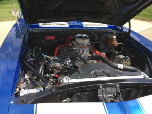HO 350 330 HP crate motor GM performance part # 12496968 (14,500 miles on it)700R4 fully hydraulic 4-speed automatic transmission1800 RPM stall torque converter with automatic lock-upShortened and balanced drivelineRebuilt 10-bolt rear end with Eaton Positraction and 308 gearsNew rear springs with custom shackles and bushingsQA1 adjustable rear shocks15x7 and 15x8 polished aluminum American Racing wheelsBF Goodrich TA Radial tires (2,000 miles)Front end rebuild with ball joints new parts and bushings where neededNorthern aluminum radiator with coolant recovery systemOriginal shroud and engine mounted flax fanComplete Vintage Air Heat Cool and Defrost system with chrome compressorNew stock fuel tank and 0-90 ohm fuel senderEdelbrock Thunder series 650 CFM carburetor with electric chokeBrake system rebuild with disc-drum master cylinder and new linesRecent disc pads and drum shoes and wheel hosesReplacement brake pedal with new bushings and foot padShorty “Clipster” headers and complete front to rear 2-1/2” exhaust systemRecent 800 amp battery and stock GM starterCenter mounted VDO temp, volt, and oil pressure gaugesCustom rebuilt vintage 8-track player and 4-speaker sound systemNew rubber door, window, and trunk sealsGrant vintage wood and chrome 3-spoke staring wheelChevy “Heartbeat” floor mats