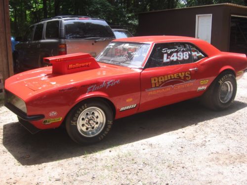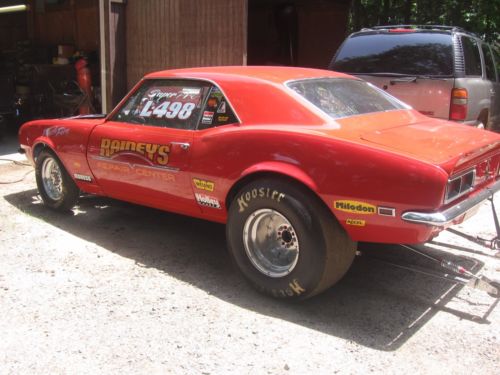 Up for auction is my 1968 Camaro..It has a fiberglass frontend..doors and deck lid..It has a Tony Fiel built 383 stroker motor with close to 650 hp.. Here's some things what the motor has in it..Oliver Rods..JE Pistons..13 to 1..Rocker Arms..Timing Chain..Dart Little M Block..Sonic Tested..4.030 Bore..3.75 Stroke..AFR Heads..Has a 400 turbo reverse valve body with no trans brake and a 5500 Converter..Line Lock..Dana 60 with 513's and a spool..I ran it at Raceway Park about three weeks ago..it went 10.40 @ 128mph..it can go faster..Stock Dash..Original Camaro Seats..Full Gage..Certified..with a swing out bar..Tubbed..14" Slicks..All New Four wheel Disc Brakes all around..New Brake LinesNew Fuel Lines..New Fuel Filter and Electric Fuel Pump..New Drive Shaft..All New Front End..Tie Rods..Drag Link..Ball Joints..Ect Ect..Has about 50 runs on the motor..I'm sure I forgot some things..If you have any questions call me @ 732-489-2201..Thanks!