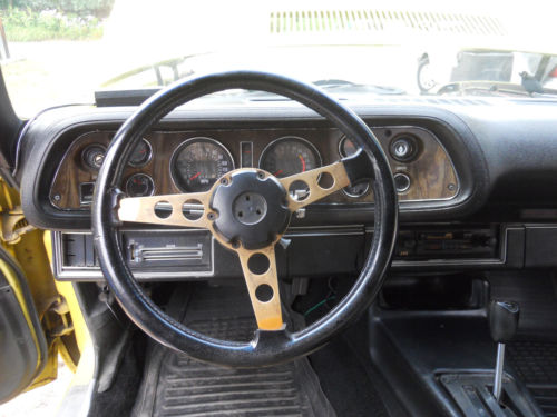 1974 Chevy Camaro with 139,134 miles. 350 4 bbl, automatic transmission, dual exhaust, factory tach, wood grain dash. Newer Keystone raider rims (tires need to be replaced). New master cylinder with new rear wheel cylinders. Engine runs good and the transmission shifts good. I will try to describe this car the best I can. It is 44 years old so it does have some leaks. This is an older restoration that show its age. This car looks good but I will start from the front and go back. Hood has some dents in it, it also has a dent when the air cleaner nut has dented it from the bottom up and a small amount of paint was chipped off. Front passenger fender has been replaced. Both front lower fenders have body filler in them which shows some bubbling. Doors look like they could have some body filler towards the bottom. Both left and right rear quarter panels have been replaced. Not sure if it was a half or full quarter panel replacement. Trunk is OK but has some surface rust inside by the hinges. Trunk pan is in good condition. The floor has surface rust but seems to be solid. The passenger side has a rusted hole in it about 6" x 6" in front of the leaf spring which does not affect the frame rail. The frame rail seems solid but does have some rust. The front sub frame is good. The interior is well used and shows wear. The passenger front seat has holes in it.