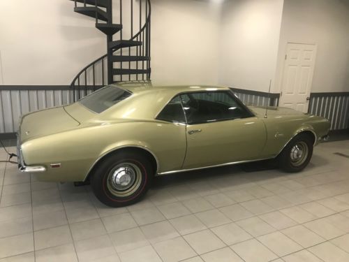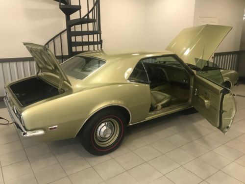 This is a true survivor 1968 Camaro 100% rust free with 17,119 original miles in incredible condition. The car was purchased new in Los Angeles California and remained with the original owner until she gave it to her nephew from Iowa in 2004. The car comes with extensive detailed documentation including the original invoice, Protecto-Plate, all service & maintenance records, original Black Plates, yearly registration cards from California DMV, etc. The authenticity of the low miles is obvious when you see the condition of the car, but it is also fully documented on all of the receipts as well as the the 1979 oil change sticker on the door that indicates 12,793 miles at that time. The Ash Gold exterior is original paint. It has a few chips and very minor door dings as expected on a 50 year old car. Also, the original gas cap was lost and replaced with an aftermarket cap at some point. Interior is all original and near mint. There is some fading on back of driver's seat panel and on the arm rests and some chips on rear of counsel as shown in the photos. The car runs and drives incredible. It has the original 327 (18L342328 0517ME) with Powerglide transmission. Options include power steering and brakes along with factory A/C. The car has a clear Texas title in my name. It's kept in an air conditioned garage and I can send any picture or video of the car requested via text. Winning bidder to make $500 non-refundable deposit via PayPal within 24 hours of auction ending. Buyer is responsible for all transportation arrangements and costs.Please email if you have questions or would like to make arrangements to view the car. Cell number 214-497-1727