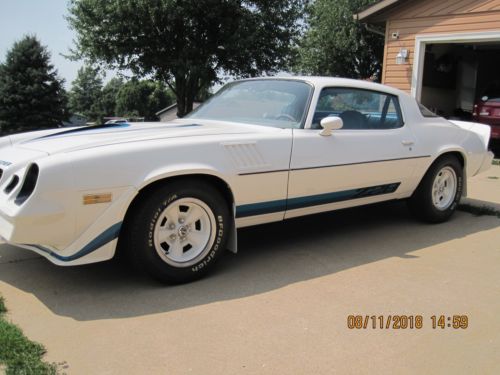 I've decided to sell my 1979 Camaro Z28 4 speed car. Im the 3rd owner of this Z28. Vehicle is very original. Has the numbers matching engine,transmission and rear end. The engine has been fully rebuilt. Upgraded cylinder heads that are period correct. I DO HAVE the original set of heads and they will come with the vehicle. Engine does have headers installed in place of the original exhaust manifolds and true 2 1/2 inch dual exhaust. Vehicle sounds great, but also runs and drives great. Car is super clean inside and out. No rust through anywhere. Minor surface rust on undercarriage where the undercoating has worn off and on differential. Would clean right up with a wire brush, if concerned. Paint is new and all decals are new. Tires are also new. Bid with confidence. Car is for sale locally, I do have the right to end auction anytime. Call or text Nick with any questions 319-929-one898. Thanks