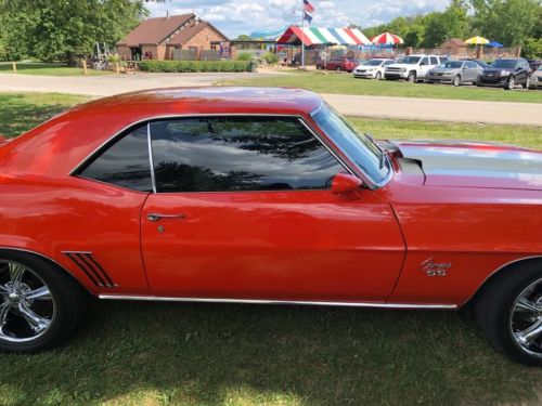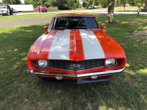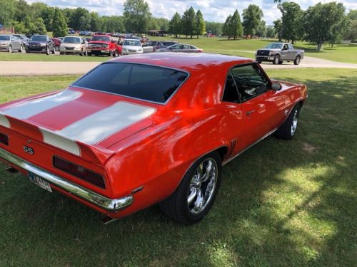 This 1969 Camaro SS was completely tore down and meticulously assembled with new parts. Brake lines, fuel lines, all rubber, all suspension, springs, shocks, gas tank, poly engine mounts, brakes, exhaust, and all chrome are new when restored. The body is straight with the gaps and fitting looking as good if not better than when it came off the line. The gorgeous Hugger Orange paint is deep and looks like there were 20 coats of paint applied. The white racing strips are painted and not decals. Under the hood sets a 2006 high performance Chevy 454 BB pushing 460 hp with less than 6000 miles. This beauty is also equipped with a turbo 350 transmission with a set of Mozier axles in the rear. Look inside and you will find a brand new interior equipped with houndstooth interior, AC, tilt steering, power steering, power brakes, AM/FM radio, seat belts, with all new gauges. This Camaro is in excellence condition. If you would like to see this amazing car or have questions you can contact me - [email protected]