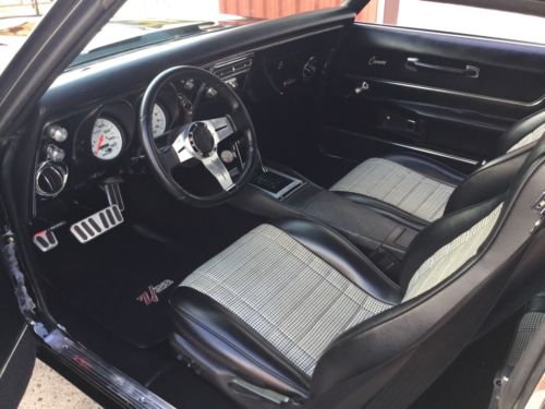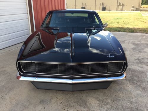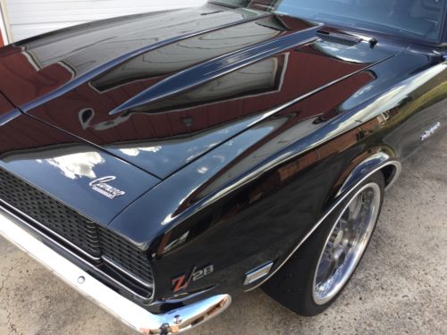 WHAT WE GOT HERE IS A 1968 Z28/RS NOT SELLING IT AS A REAL Z28 OR RS IM NOT GOOD AT DECODING BUT WHO KNOWS IT MIGHT BE BUT IM NOT A MATCHING NUMBERS KINDA GUY AS LONG AS IT LOOKS COOLS SO IM SELLING IT AS A CLONE.LET ME START BY SAYING THAT THIS CAMARO IS BAD TO THE BONE AND IS PROBABLY ONE OF THE NICEST AND BEST BUILT ON THE MARKET TODAY I HAVE PERSONALLY OWNED THIS CAR ABOUT 4 YEARS ITS ONE OF THE CARS THAT IVE KEPT THE LONGESTCAUSE I LOVE EVERYTHING ABOUT IT,THE KILLER STANCE THE LS DRIVETRAIN THAT CANT BE BEAT THE INTERIOR AND THE LIST GOES ON ESPECIALLY THE WAY THE CAR DRIVES AND HANDLES AND THE POWER TO SPARE IT GETS UP AND GOES THIS IS HONESTLY A GET IN AND DRIVE ANYWHERE TYPE OF CAR PERIOD NO ISSUES EVER CAR HAS BEEN ALL SORTED OUT AND TUNED AWESOME.LIKE ALWAYS IM SURE I WILL FORGET SOME DETAILS OF THE CAR BUT I WILL INCLUDE MY CELL AT THE BOTTOM OF THE ADD IN CASE YOU HAVE QUESTIONS ETC.CAR WAS BUILT ABOUT 5 YEARS AGO BY A BUDDY OF MINE AND TOOK NO SHORT CUTS CAR WAS IN SUPER CHEVY MAGAZINE AND WON A BUILDERS CHOICE AWARD,LET ME STARTWITH THE BODY AND TRIM THE BODY IS LASER STRAIGHT AS YOU CAN SEE IN THE MILE DEEP BLACK SLICK PAINT PAINT IS VERY NICE DOES HAVE SOME MINOR FLAWS AND SOME CHIPS HERE AND THERE FROM NORMAL DRIVING CAR WAS BUILT TO DRIVE AND ENJOY BUT IS VERY PRESENTABLE OVERALL,THE CHROME AND TRIM ARE IN EXCELLENT SHAPE THE DOORS OPEN AND CLOSE PERFECT BETTER THAN FROM THE FACTORY SUPER SOLID,WINDOWS ROLL UP AND DOWN AS THEY SHOULD CAR IS SUPER QUITE AND SOLID HAS SOUND DEADENING MATERIAL FROM FIREWALL ALL THE WAY BACK INTO THE TRUNKAND DOORS COMPLETELY COVERED SOME ADDED GOODIES ON THE TRIM AND BODY HAS DETROIT SPEED ELECTRIC DOOR OPENERS THAT WORK GREAT,LED DIGITAILS SEQUENTIAL TAILIGHTS THAT LOOK AWESOME Z28 BADGING ETC.INTERIOR IS SUPER CLEAN AND NICE WITH HOUNDSTHOOTH INSERTS WITH FRONT NEWER 3RD GEN BUCKET SEATS WITH DRIVER POWER SEATS BLEND RIGHT IN AND ARE VERY COMFORTABLE AND LOOK GREAT,FACTORY CONSOLE WITH HORSE SHOE SHIFTER WITH OD PLATE AND CONSOLE IS FULL OF AUTOMETER PHANTHOM GUAGES TO MATCH ALL THE GUAGES IN THE DASH TO KEEP AN EYE ON ALL THE VITALS INTERIOR OVERALL LOOKS AWESOME UPDATED WITH SOME NEWER TOUCHES WITHOUT AFFECTING THE FIRST GEN LOOK,FOR CREATURE COMFORTS ITS RUNNING A VINTAGE AIR A/C SETUP THAT BLOWS COLD WORKS GREAT.MOVING ON TO THE BEST PART OF THIS BEAST SUSPENSION INCLUDES COMPLETE REAR MINITUBB WITH QUADRALINK SUSPENSION AND ADJUSTABLE QA1 COILOVERS FRONT AND REAR THIS IS THE BEST OF THE BEST REAR SUSPENSION CAR HANDLES AND DRIVES REAL NICE,STOPPING POWER COMES FROM FRONT AND REAR SSBC DISC BRAKES WITH SLOTTED ROTORS ALSO INCLUDES WILWOOD MASTER CYLINDER AND A COMPLETE HYDRO BOOST SETUP CAR STOPS ON A DIME WITH NO EFFORT,RED CALIPERS LOOK AWESOME BEHIND THE CUSTOM BUILT SET OF BOZE WHEELS 7k CONSIST OF 18x12 REARS AND 18x8 UP FRONT ON MASSIVE 335 MEATS CAR LOOK VISCIUOS FROM THE BACK NO DOUBT,REAREND IS A 12 BOLT WITH POSI UNIT AND 373 GEARS WITH MOSER REAREND COVER WITH SUPPORT AND BACK IS PERFORMANCE ENHANSED AND DRESSED UP WITH STAINLESS FUEL TANK AND HIGH FLOW FUEL PUMP SETUP,MOVING ON TO THE POWER PLANT IT CONSIST OF A FULLY BUILT AND FORGED LS2 6.0 WITH A CUSTOM GRIND CAM,PORTED AND POLISHED HEADS HIGH FLOW THROTTLE BODY ETC,MOTOR BREATHS THROUGH MID LENGHT HEADERS FOR MORE CLEARANCE BACK TO A TRUE DUAL EXHAUST WITH MAGNA FLOW MUFFLERS CAR SOUNDS AWESOME QUITE WHEN CRUISING BUT WHEN YOU OPEN HER UP YOU CAN TELL IT MEANS BUSINESS MOTOR MAKES AROUND 550 HP RUNS VERY STRONG INCREDIBLE THROTTLE RESPONSE,NO COOLING ISSUES HERE THANKS TO THE CUSTOM SHROUD AND DUAL SPAL ELECTRIC FANS ENGINE BAY IS VERY CLEAN OVERALL WITH NICE TOUCHES AND DETAILS,POWER IS SHIFTED AND HANDLED BY A FULLY BUILT 4l65 WITH ALL THE BILLET COMPONENTS WITH A YANK STAHL CONVERTER CAR OPENS UP NO DOUBT AND WILL PUT A SMILE ON YOUR FACE EVERY TIME LIKE I SAID IM PROBABLY FORGETTING SOME STUFF AND DETAILS BUT IF YOUR LOOKING FOR A BAD TO THE BONE FIRST GEN CAMARO WITH ALL THE RIGHT STUFF THIS IS IT CARS OF THIS CALIBER AND THIS NICE ARE HARD TO FIND AND DONT COME OFTEN ESPECIALLY BUILT RIGHT WITH NO SHORT CUTS TAKE A LOOK OUT THERE YOURSELF AND COMPARE I GURANTEE YOU WONT FIND ONE NICER AND WITH A BADDER STANCE THAN THIS ONE YOU WONT BUILD ONE FOR THE RESERVE PRICE AND LOOK WHAT OTHERS ARE SELLING FOR THAT DONT EVEN COME CLOSE TO THIS ONE AND NOT EVEN MINITUBBED A REAR MINITUBB SETUP SETUP OF THIS CALIBER WILL COST 20k WITH ALL THE PARTS AND LABOR WHEELS AND ALL THE RIGHT COMPONENTS SO IF YOUR INTERESTED AND SERIOUS CALL ME WITH ANY QUESTIONS ETC AT 956-638-6639 THANKS FOR LOOKING AND READING.